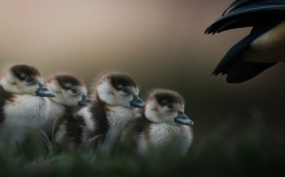 The winners included a row of four goslings under the protective wing of their parent, a swan taking flight and a common blue butterfly pictured in the spring sunshine.