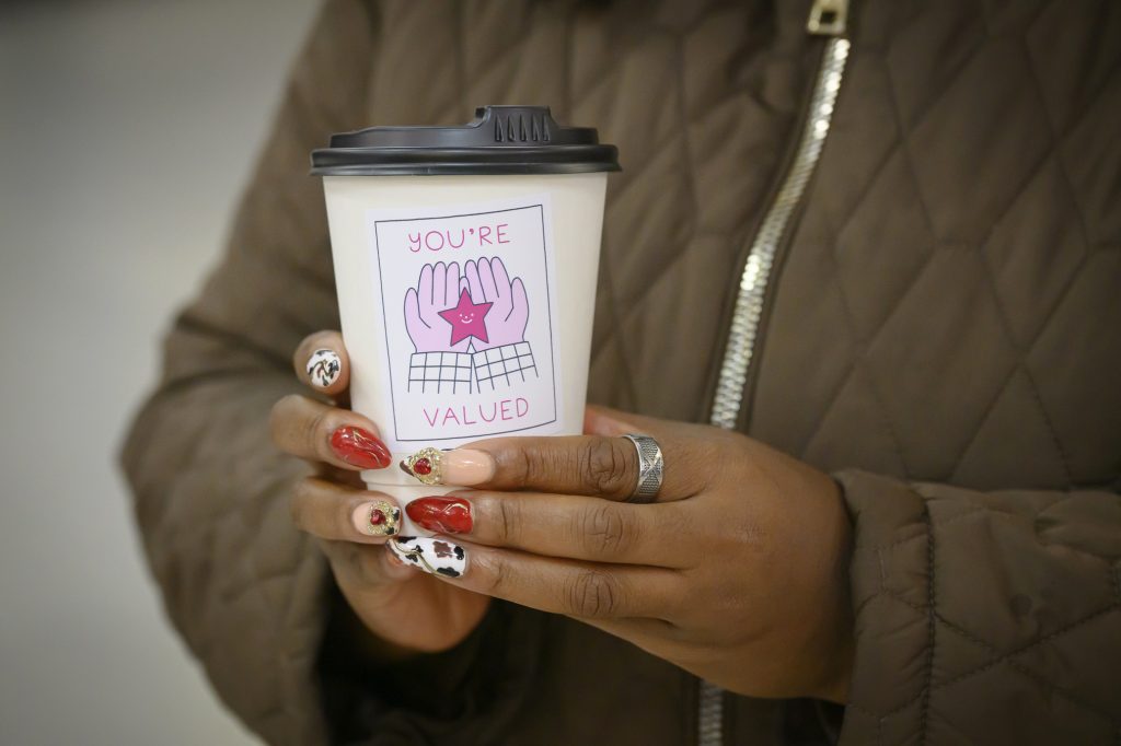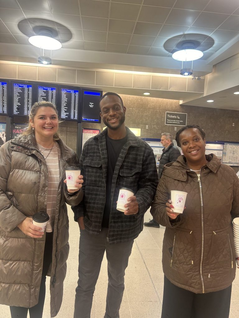 Additionally, GTR surprised commuters with free coffee in cups with stickers of artwork with phrases such as ‘here if you need’ and ‘you’re valued’.